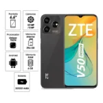Smartphone ZTE Blade V50 Desing (6+10)+256GB NegroEl celular ZTE Blade V50 Design ofrece un amplio almacenamiento de 256GB y 6GB de RAM para un rendimiento fluido.q Con una cámara principal de 50MP + 2MP y una frontal de 5MP, captura momentos con gran detalle. Su pantalla de 6.6″ te brinda una experiencia inmersiva.q Todo ello en un elegante color negro que añade un toque de estilo a tu dispositivo móvil.